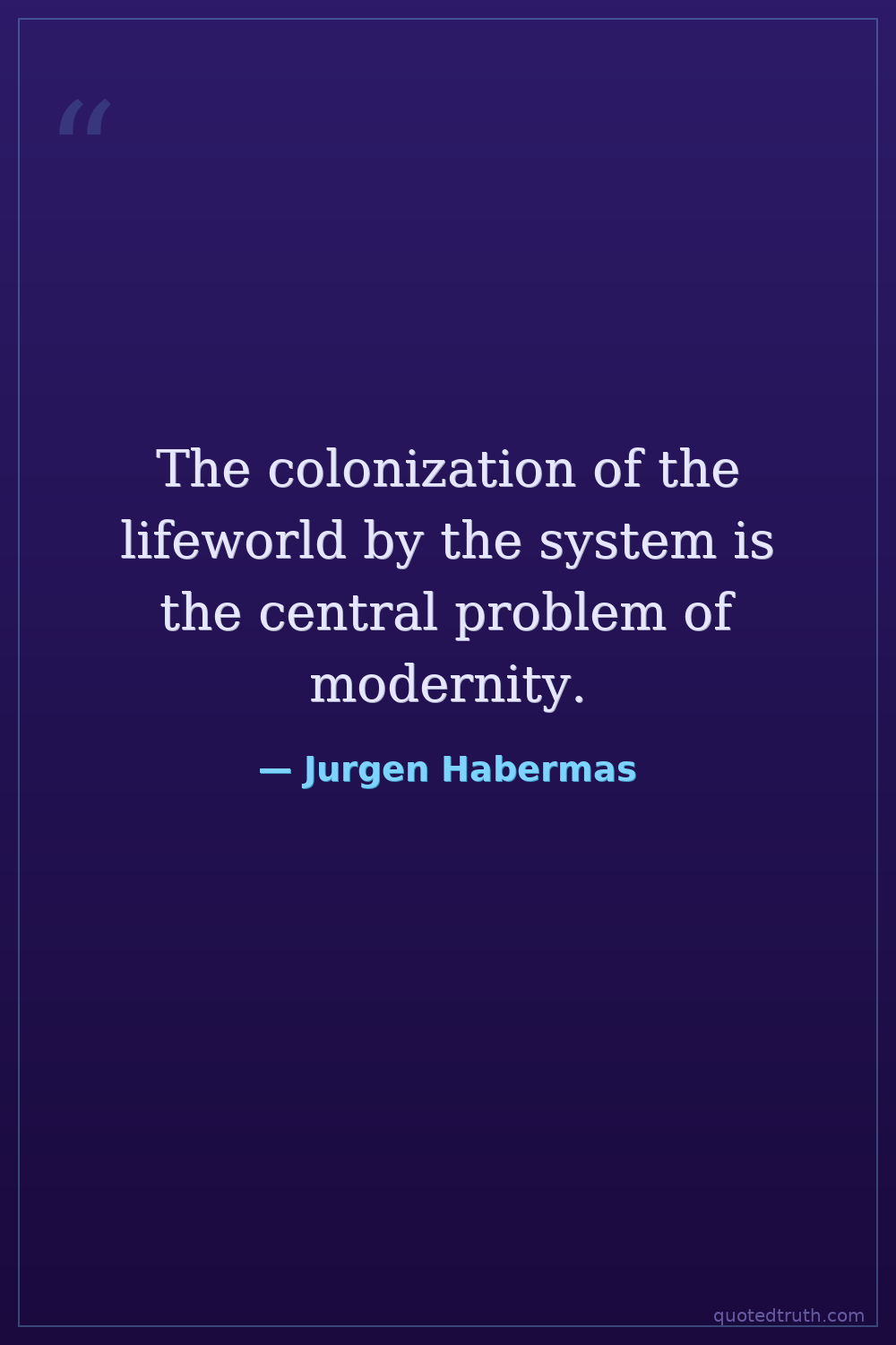 Controversial"The colonization of the lifeworld by system imperatives is the real pathology of modernity."