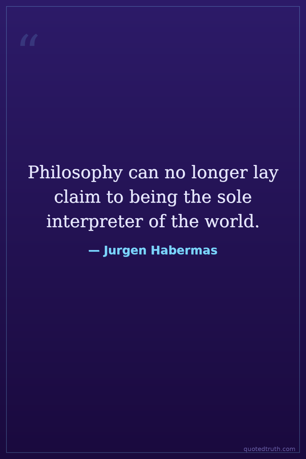 Philosophy can no longer lay claim to being the sole interpreter of the world.
