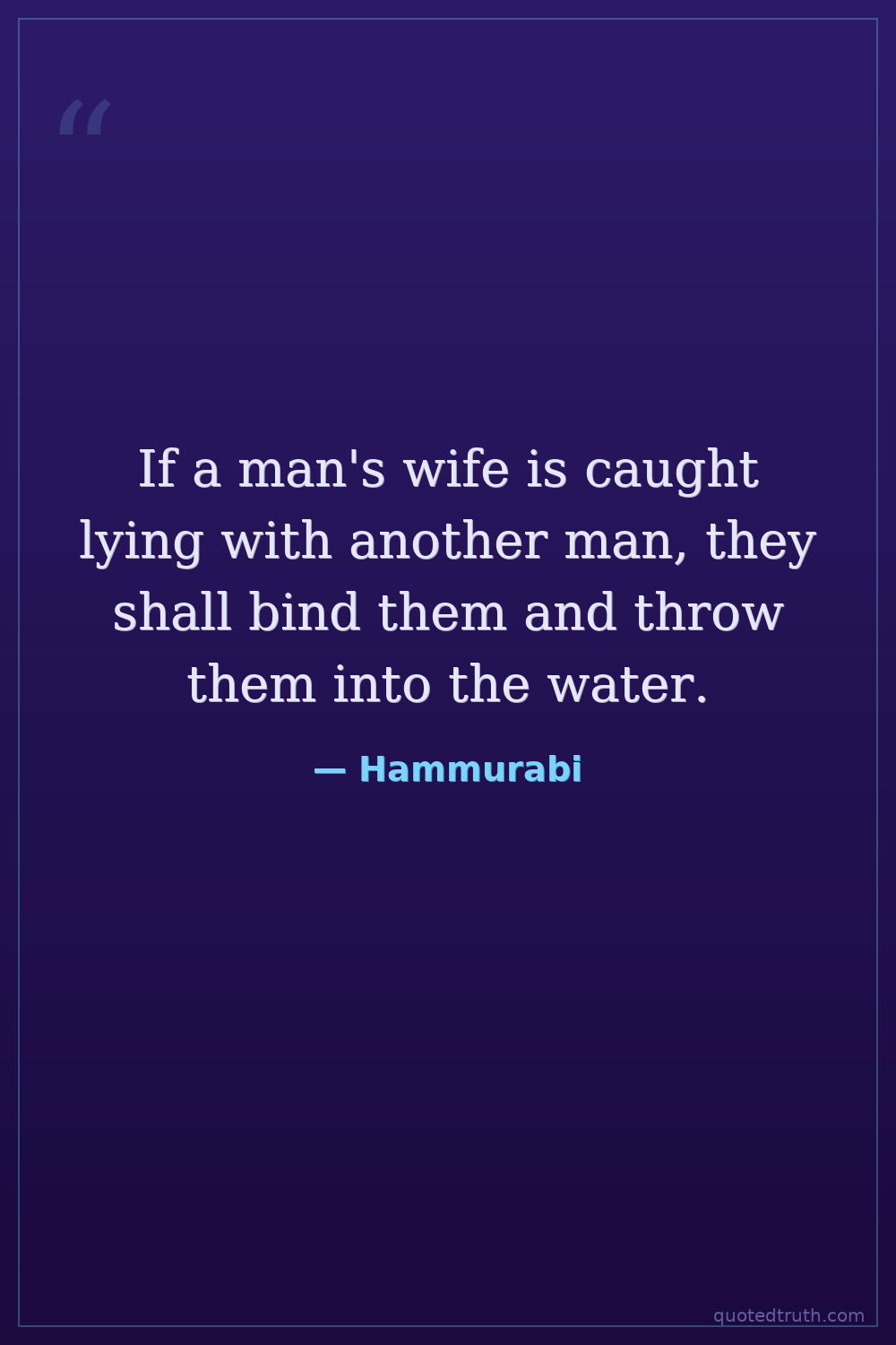 If a man's wife is caught lying with another man, they shall bind them and throw them into the water.
