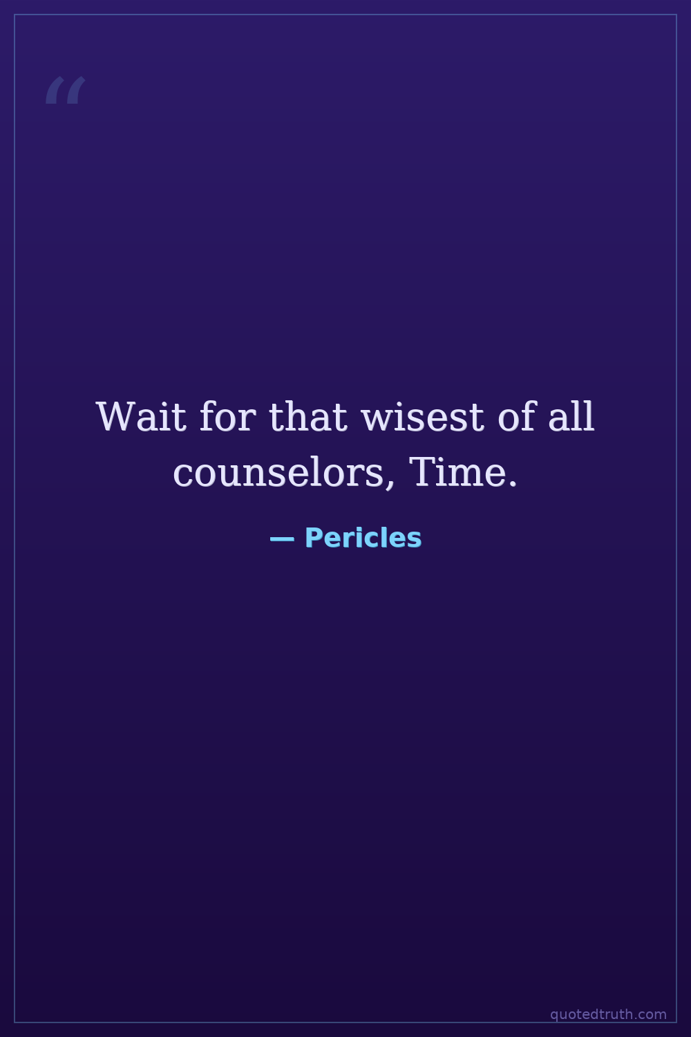 Wait for that wisest of all counselors, Time.