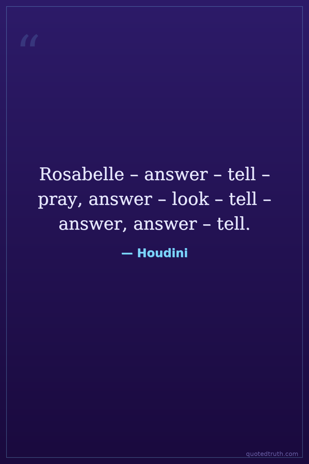 Rosabelle – answer – tell – pray, answer – look – tell – answer, answer – tell.