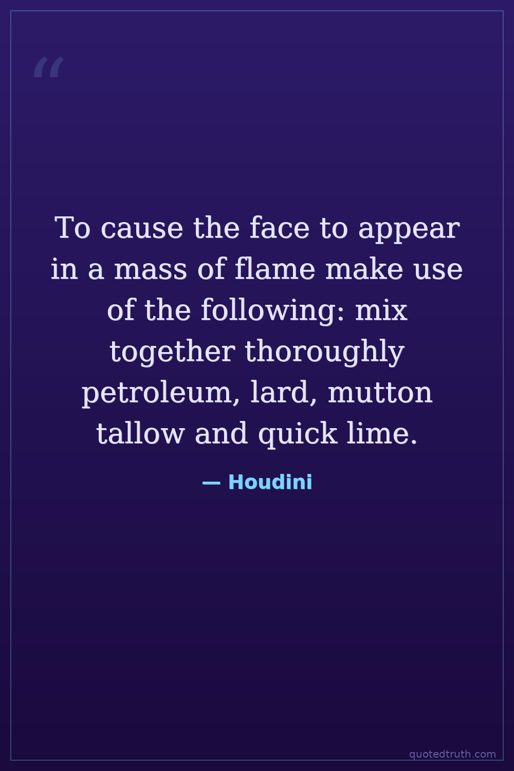 To cause the face to appear in a mass of flame make use of the following: mix together thoroughly petroleum, lard, mutton tallow and quick lime.