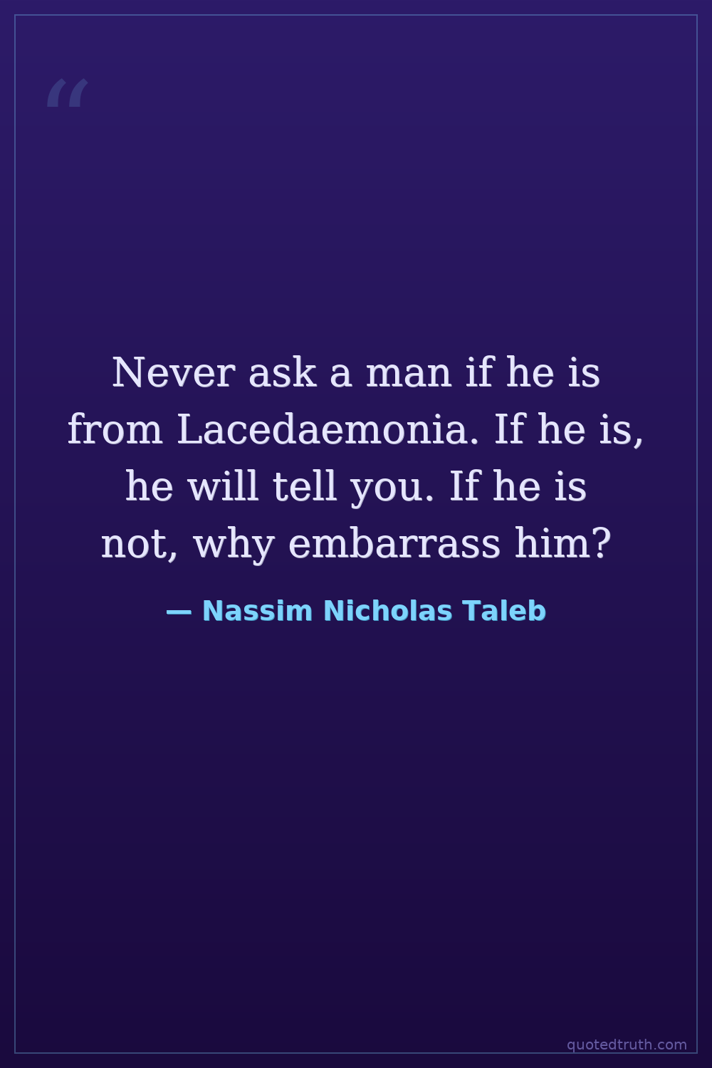 Never ask a man if he is from Lacedaemonia. If he is, he will tell you. If he is not, why embarrass him?