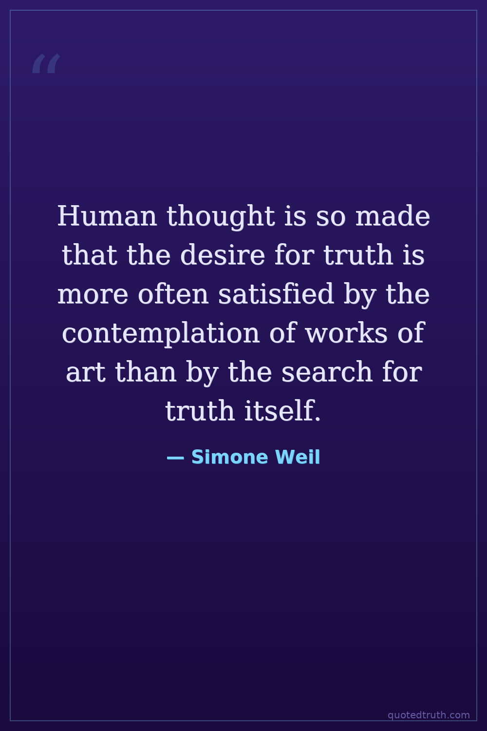 Human thought is so made that the desire for truth is more often satisfied by the contemplation of works of art than by the search for truth itself.