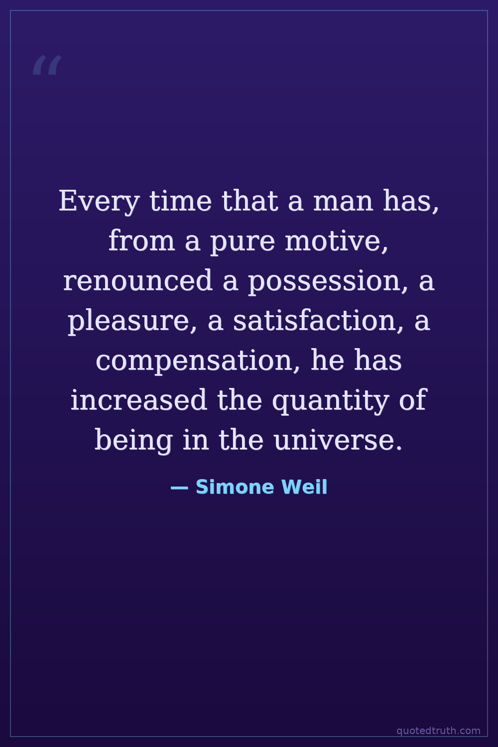 Every time that a man has, from a pure motive, renounced a possession, a pleasure, a satisfaction, a compensation, he has increased the quantity of being in the universe.