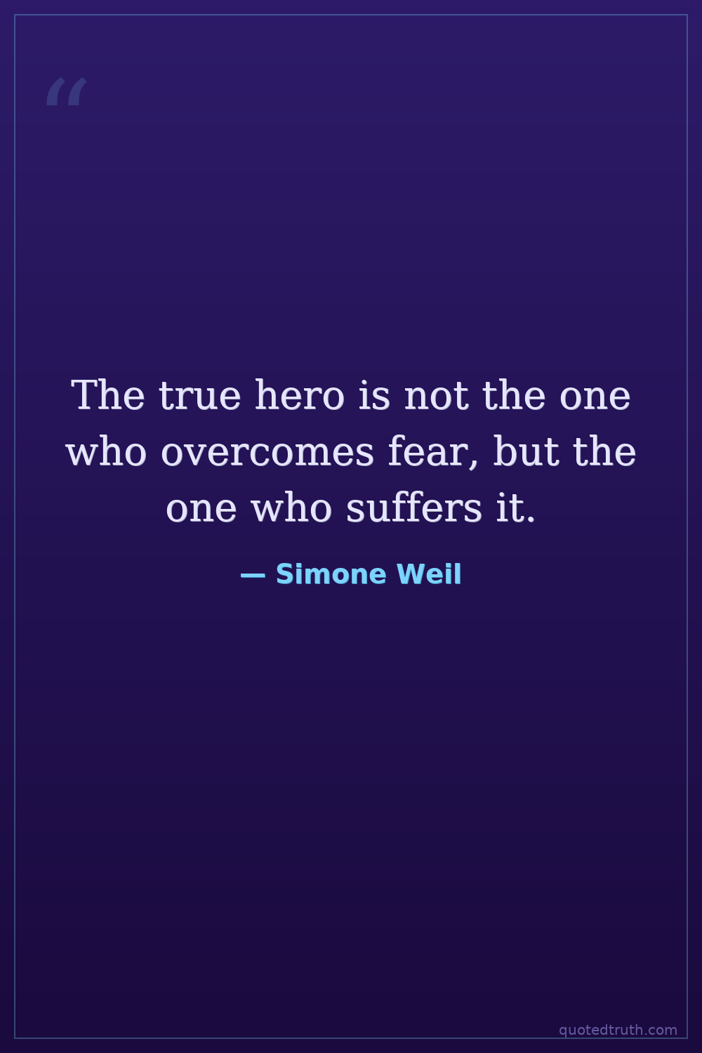The true hero is not the one who overcomes fear, but the one who suffers it.