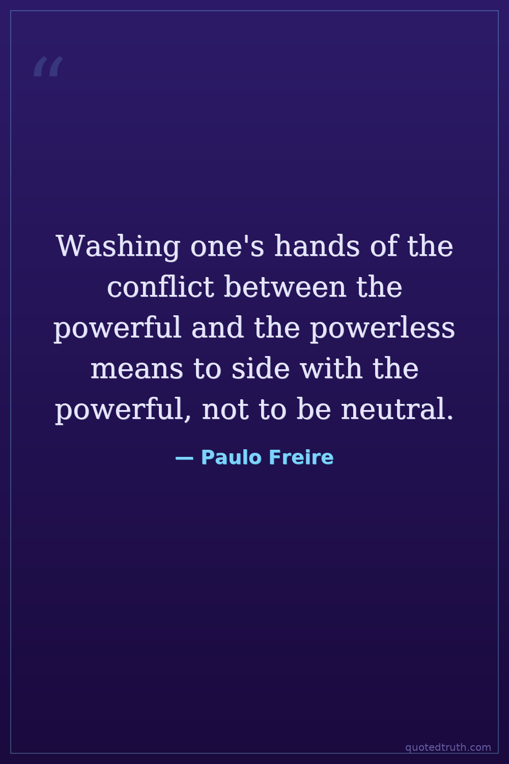 Washing one's hands of the conflict between the powerful and the powerless means to side with the powerful, not to be neutral.