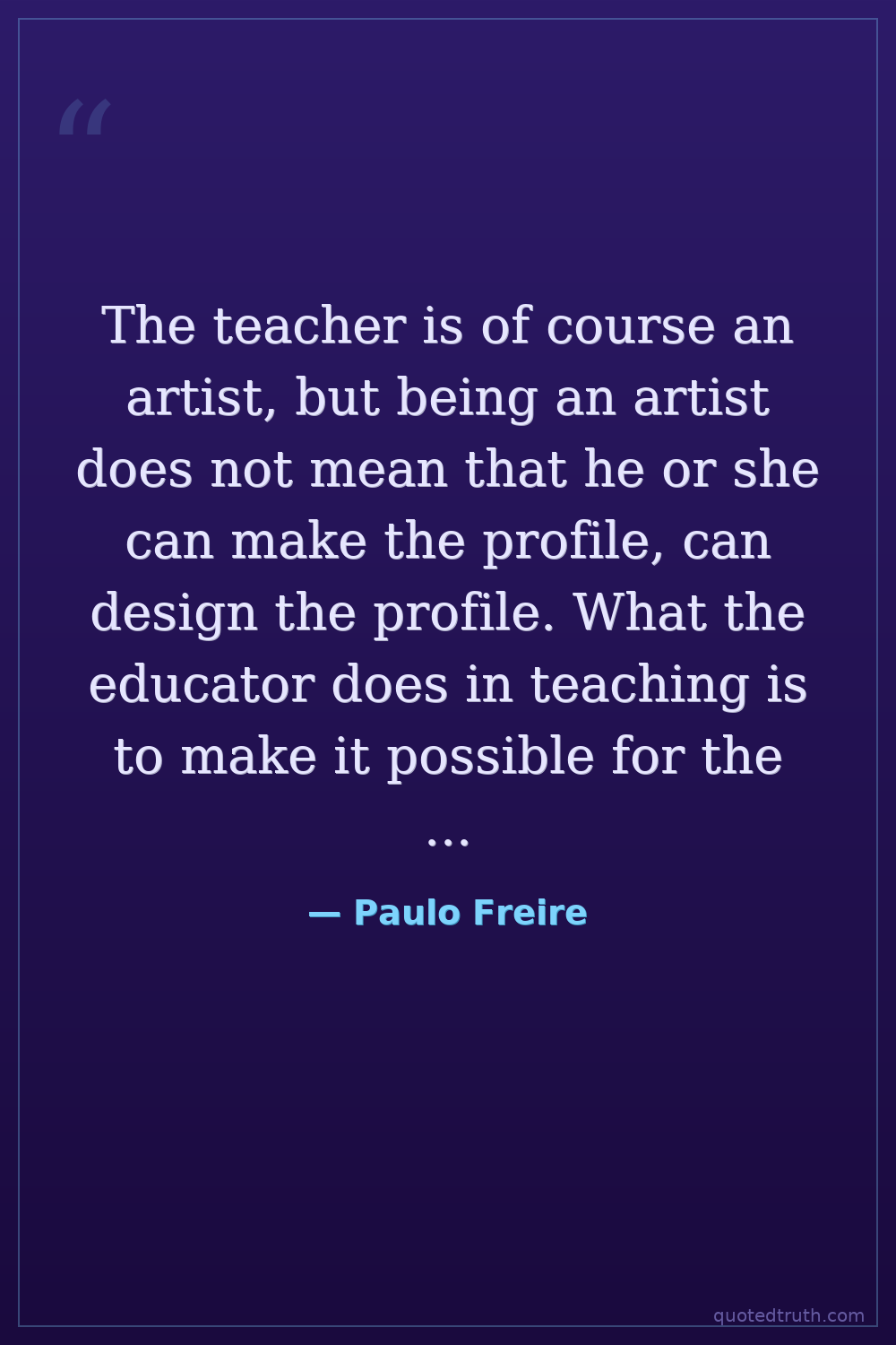 The teacher is of course an artist, but being an artist does not mean that he or she can make the profile, can design the profile. What the educator does in teaching is to make it possible for the student to become himself or herself.