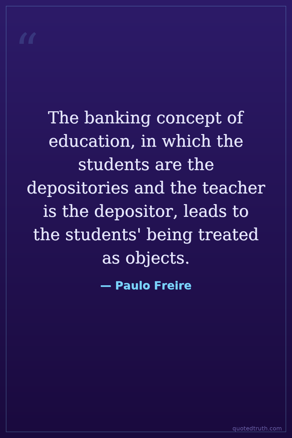 The banking concept of education, in which the students are the depositories and the teacher is the depositor, leads to the students' being treated as objects.