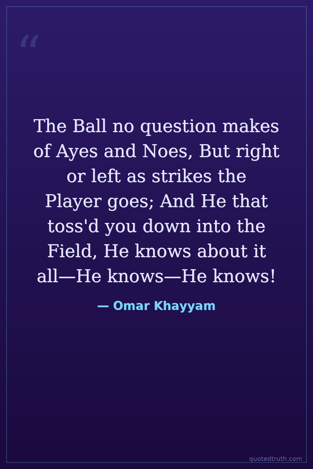 The Ball no question makes of Ayes and Noes, But right or left as strikes the Player goes; And He that toss'd you down into the Field, He knows about it all—He knows—He knows!