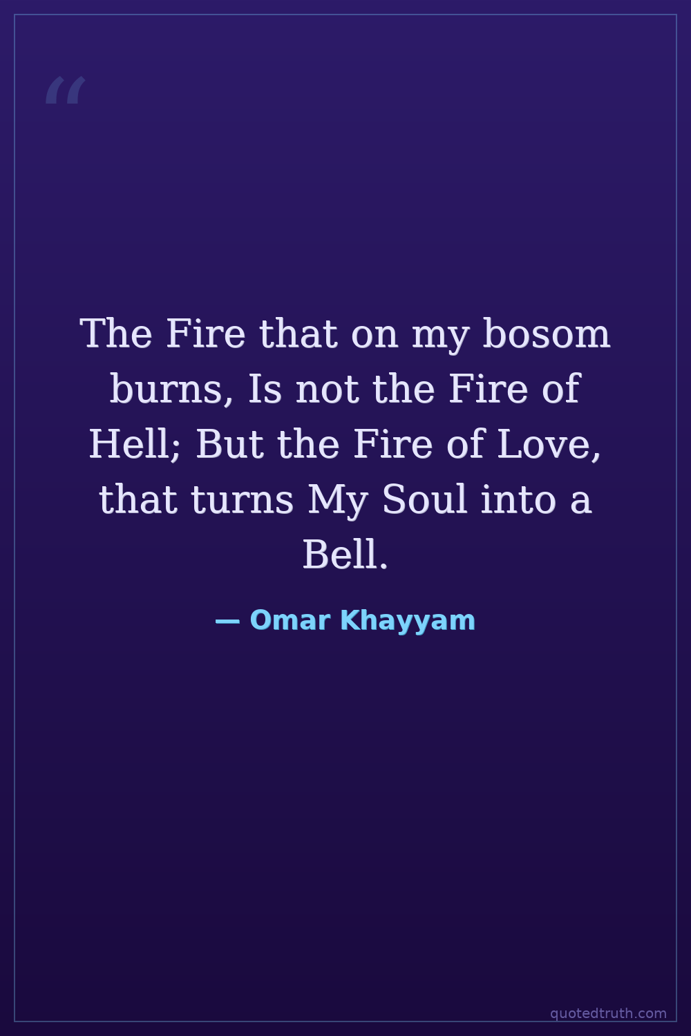 The Fire that on my bosom burns, Is not the Fire of Hell; But the Fire of Love, that turns My Soul into a Bell.