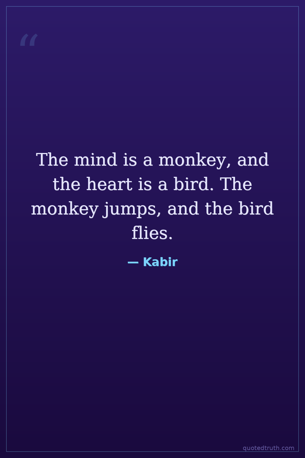 The mind is a monkey, and the heart is a bird. The monkey jumps, and the bird flies.