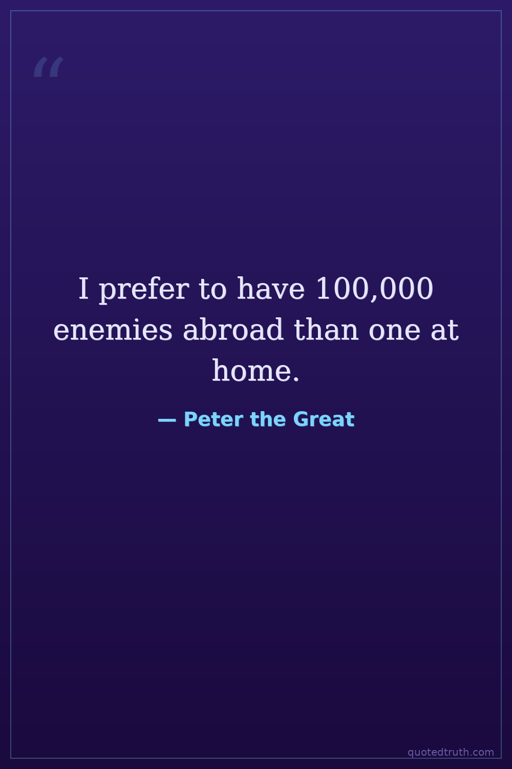 I prefer to have 100,000 enemies abroad than one at home.