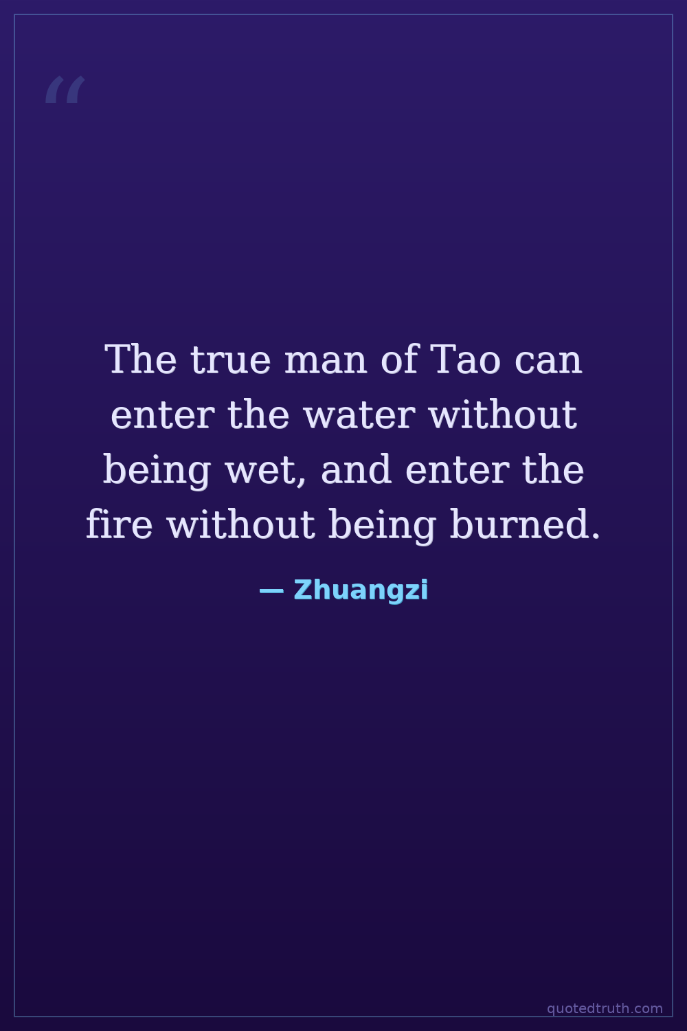 The true man of Tao can enter the water without being wet, and enter the fire without being burned.