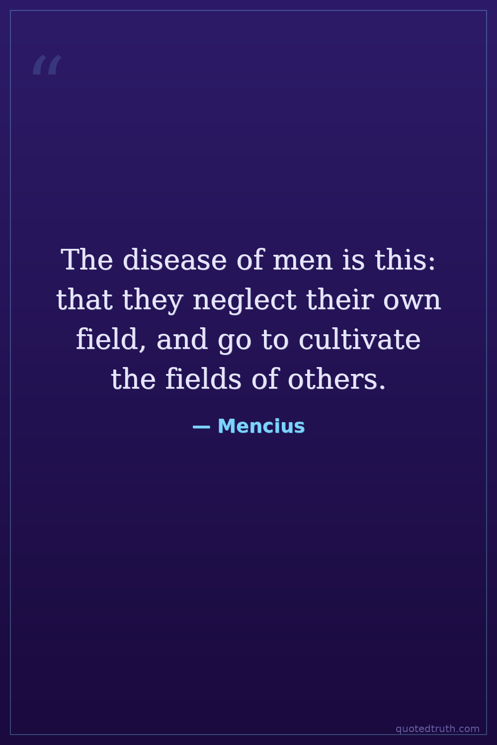 The disease of men is this: that they neglect their own field, and go to cultivate the fields of others.