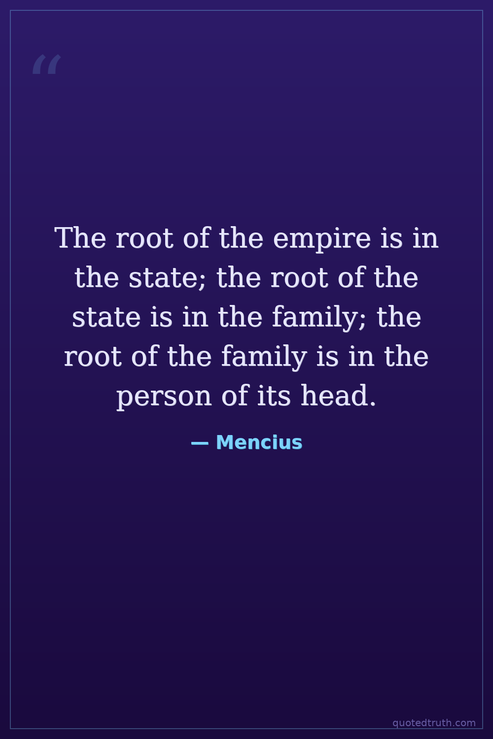 The root of the empire is in the state; the root of the state is in the family; the root of the family is in the person of its head.