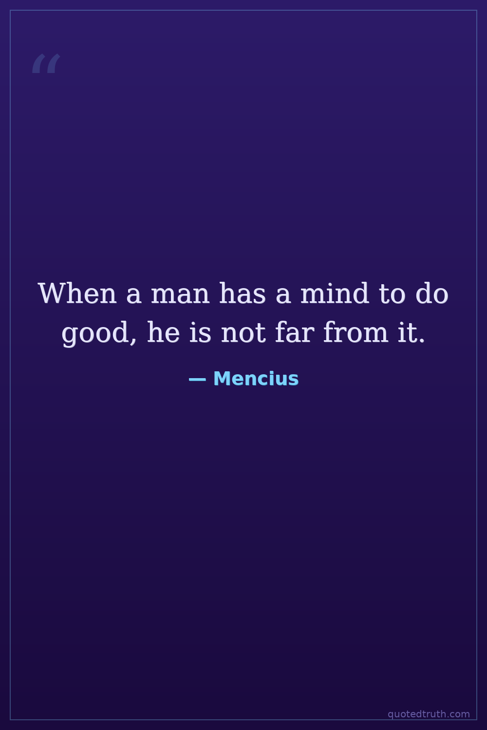 When a man has a mind to do good, he is not far from it.