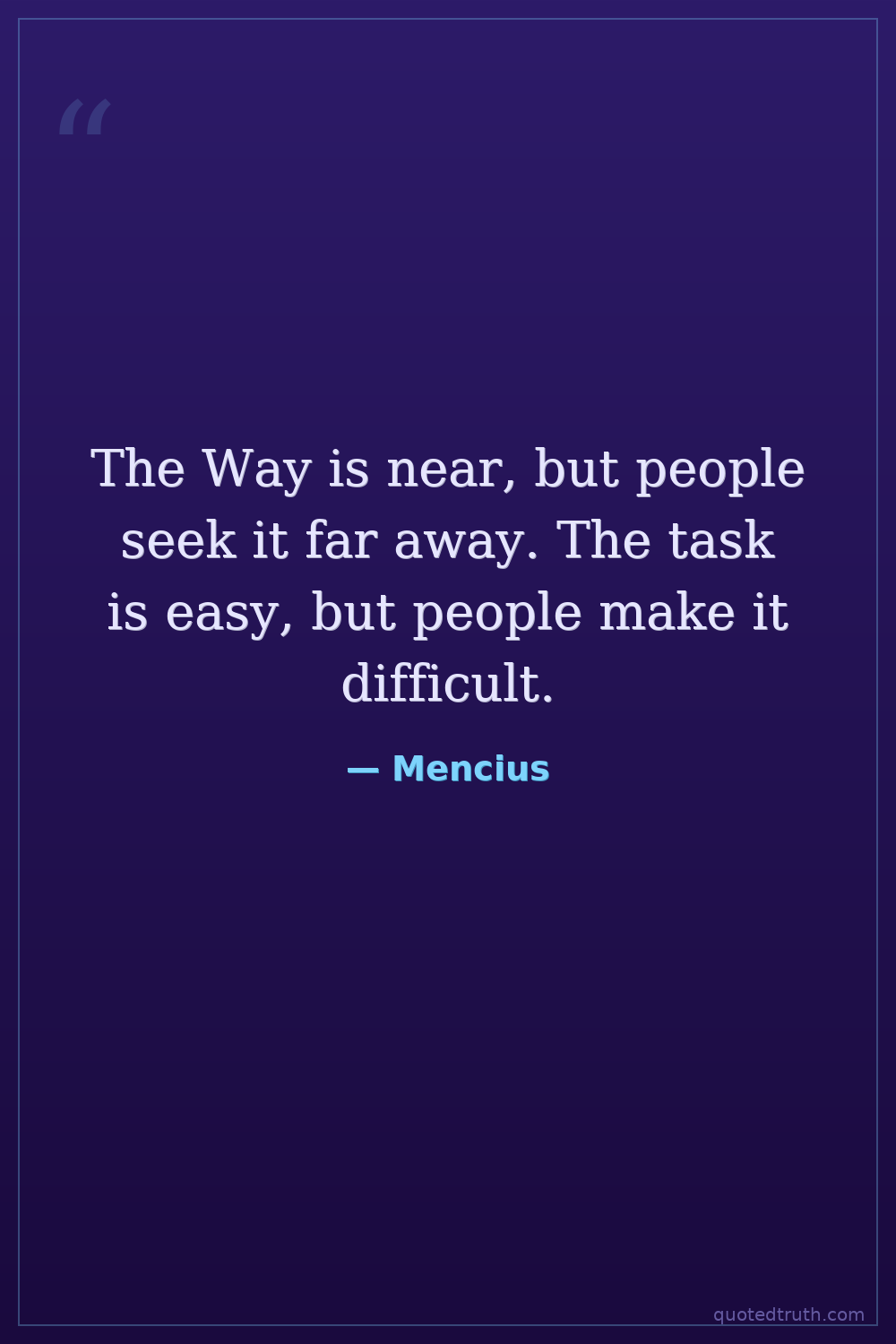 The Way is near, but people seek it far away. The task is easy, but people make it difficult.