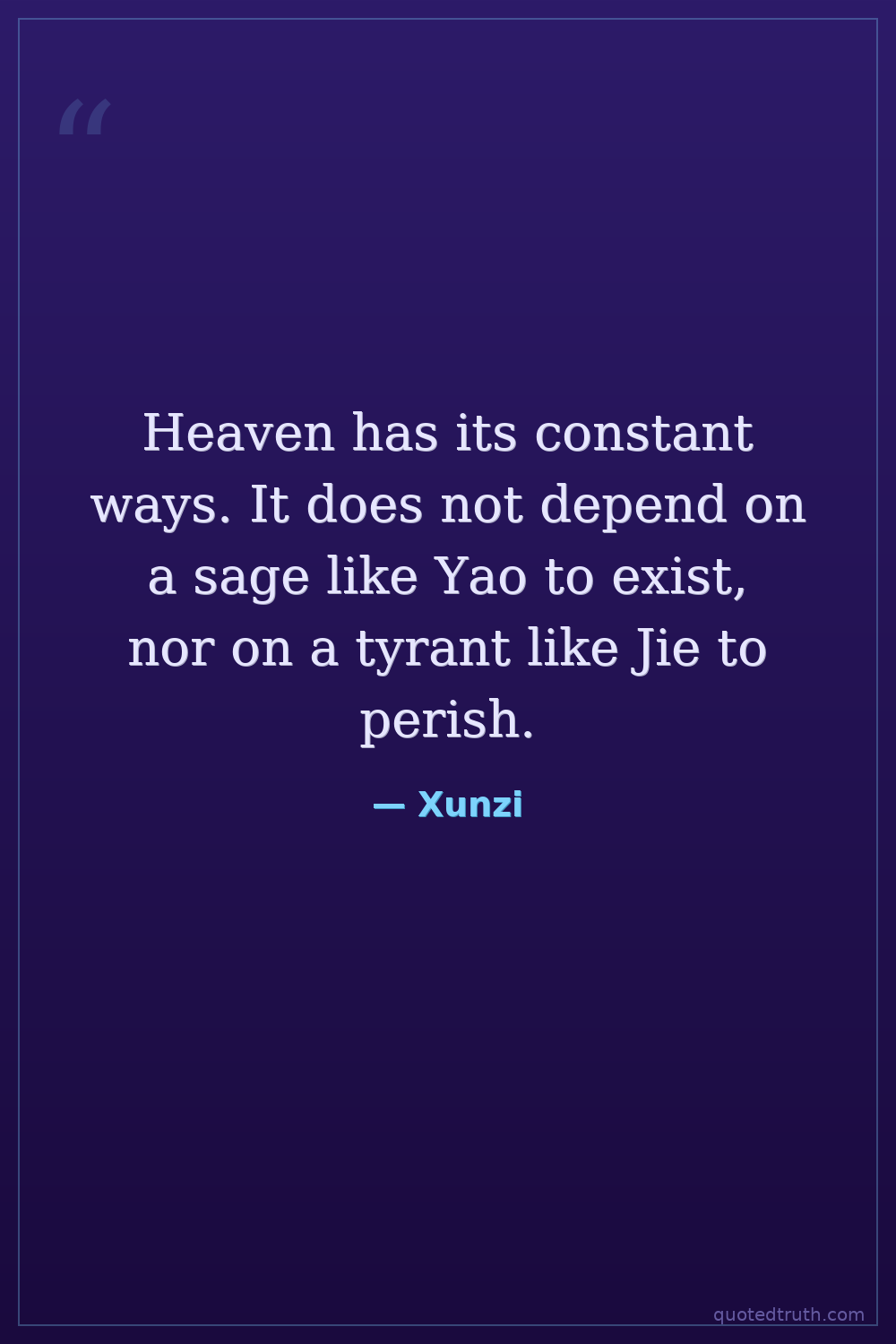 Heaven has its constant ways. It does not depend on a sage like Yao to exist, nor on a tyrant like Jie to perish.