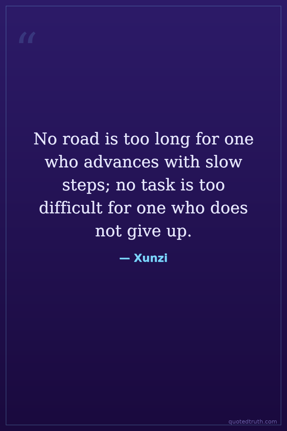 No road is too long for one who advances with slow steps; no task is too difficult for one who does not give up.