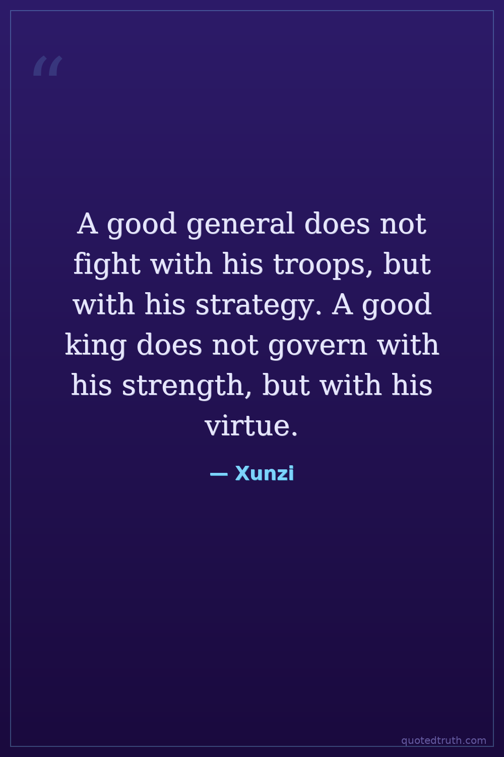 A good general does not fight with his troops, but with his strategy. A good king does not govern with his strength, but with his virtue.