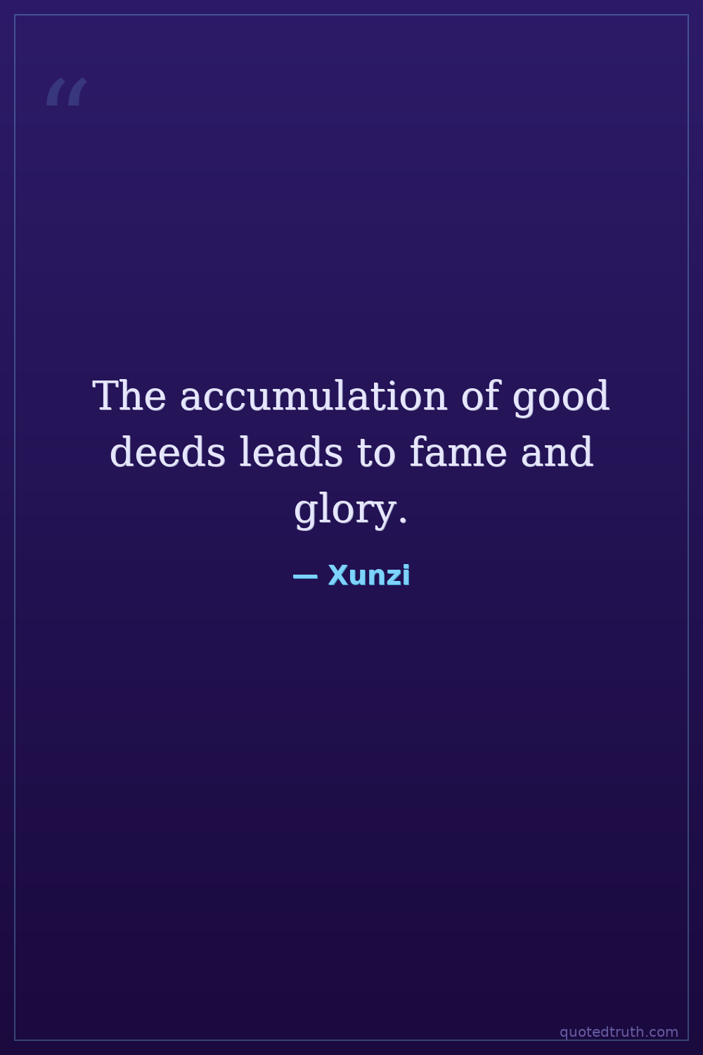 The accumulation of good deeds leads to fame and glory.