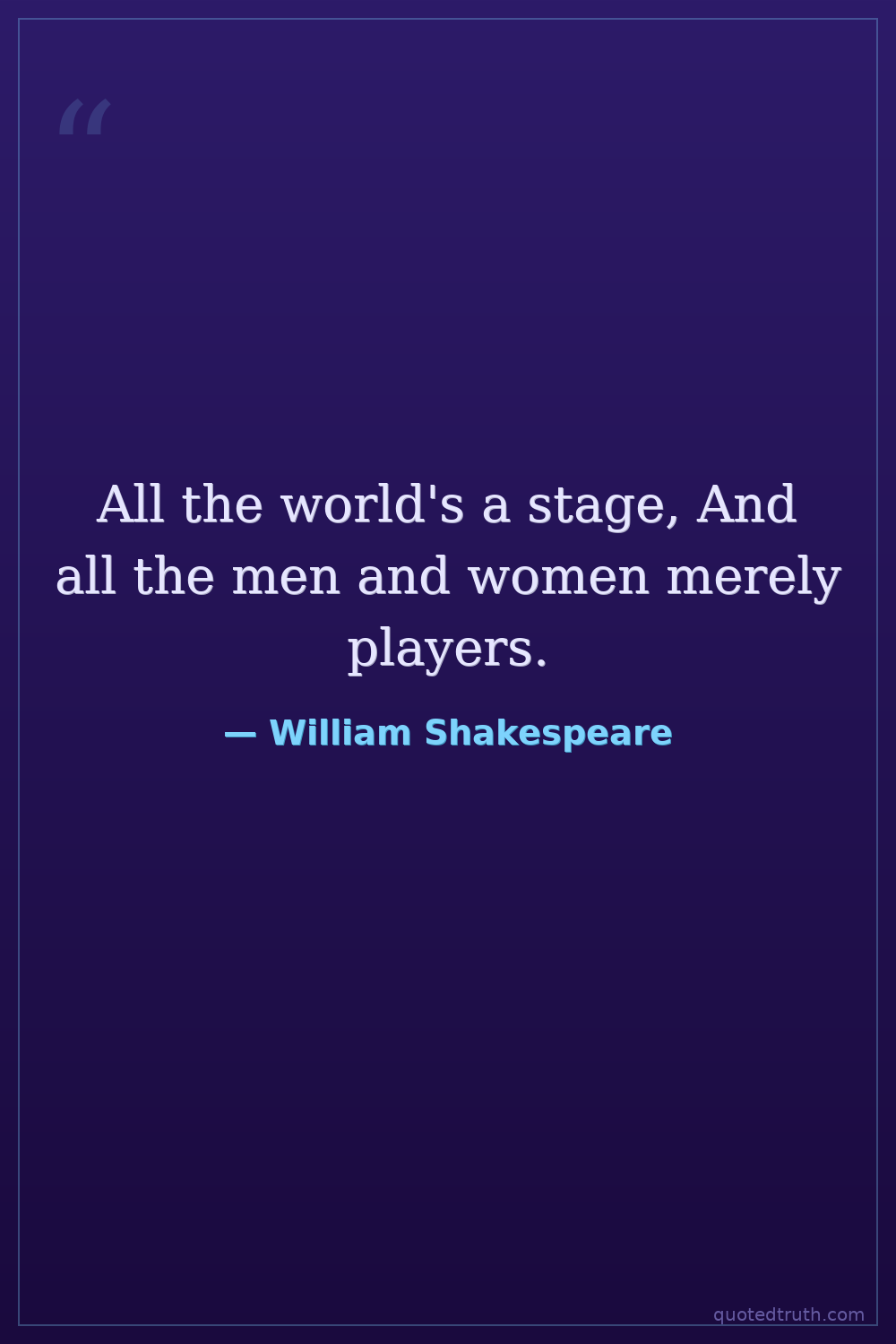 All the world's a stage, And all the men and women merely players.