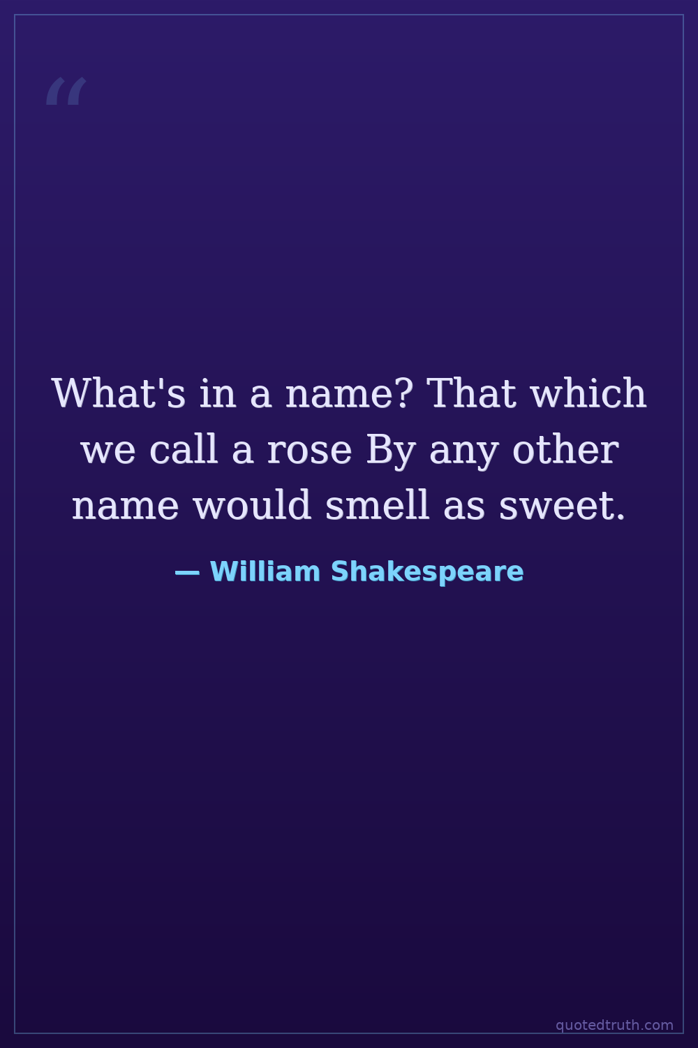What's in a name? That which we call a rose By any other name would smell as sweet.