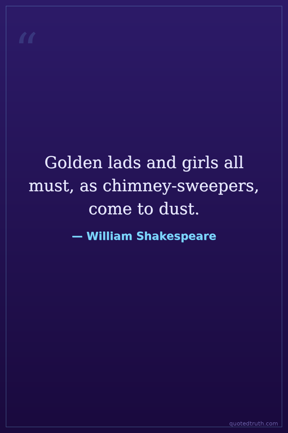 Golden lads and girls all must, as chimney-sweepers, come to dust.