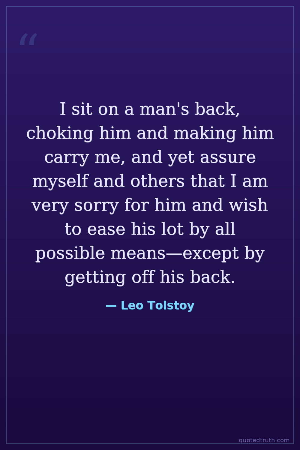I sit on a man's back, choking him and making him carry me, and yet assure myself and others that I am very sorry for him and wish to ease his lot by all possible means—except by getting off his back.