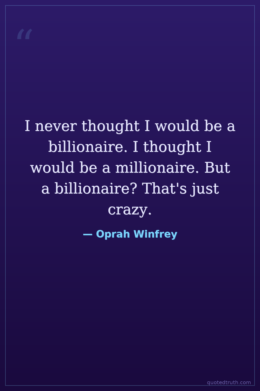 I never thought I would be a billionaire. I thought I would be a millionaire. But a billionaire? That's just crazy.