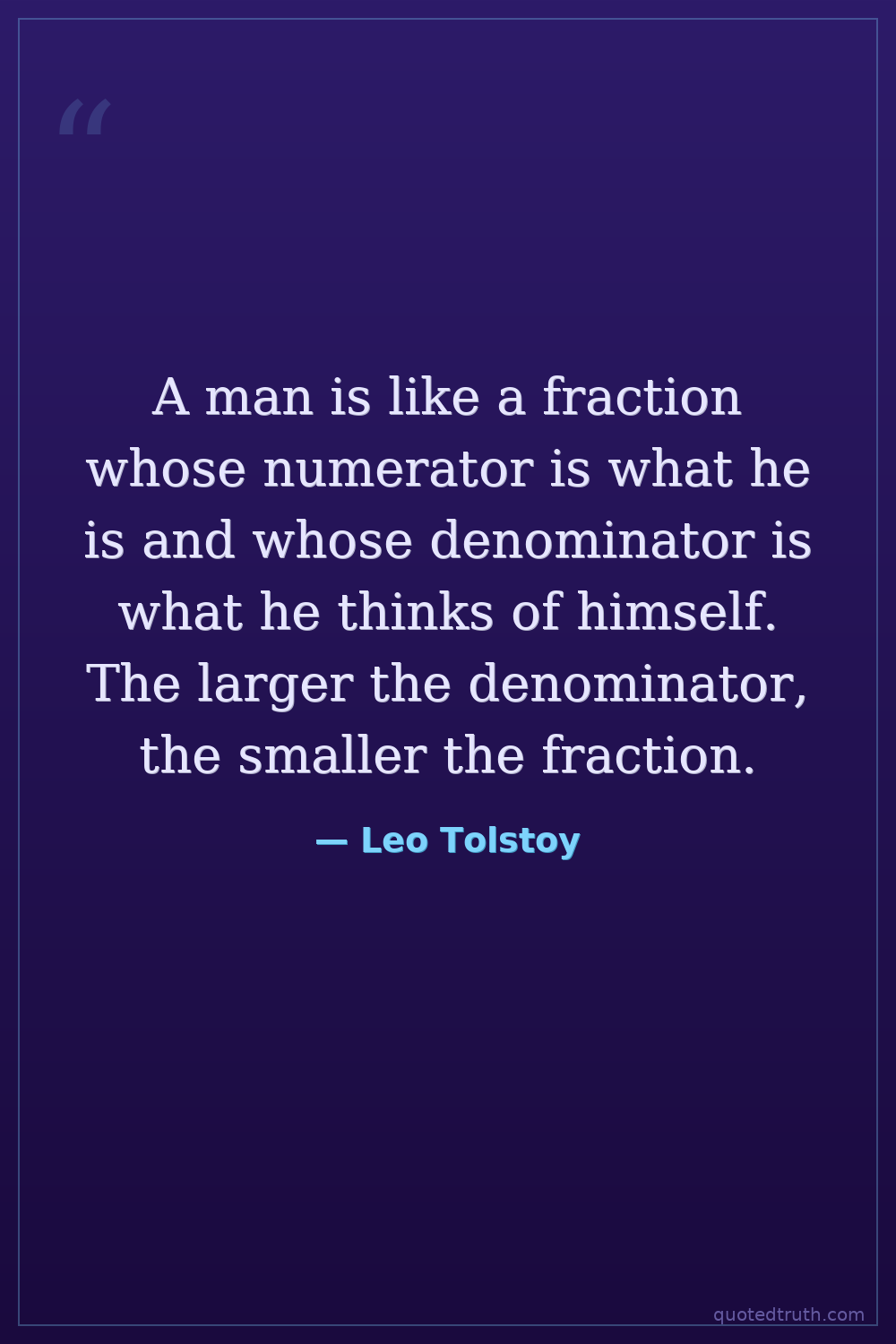 A man is like a fraction whose numerator is what he is and whose denominator is what he thinks of himself. The larger the denominator, the smaller the fraction.