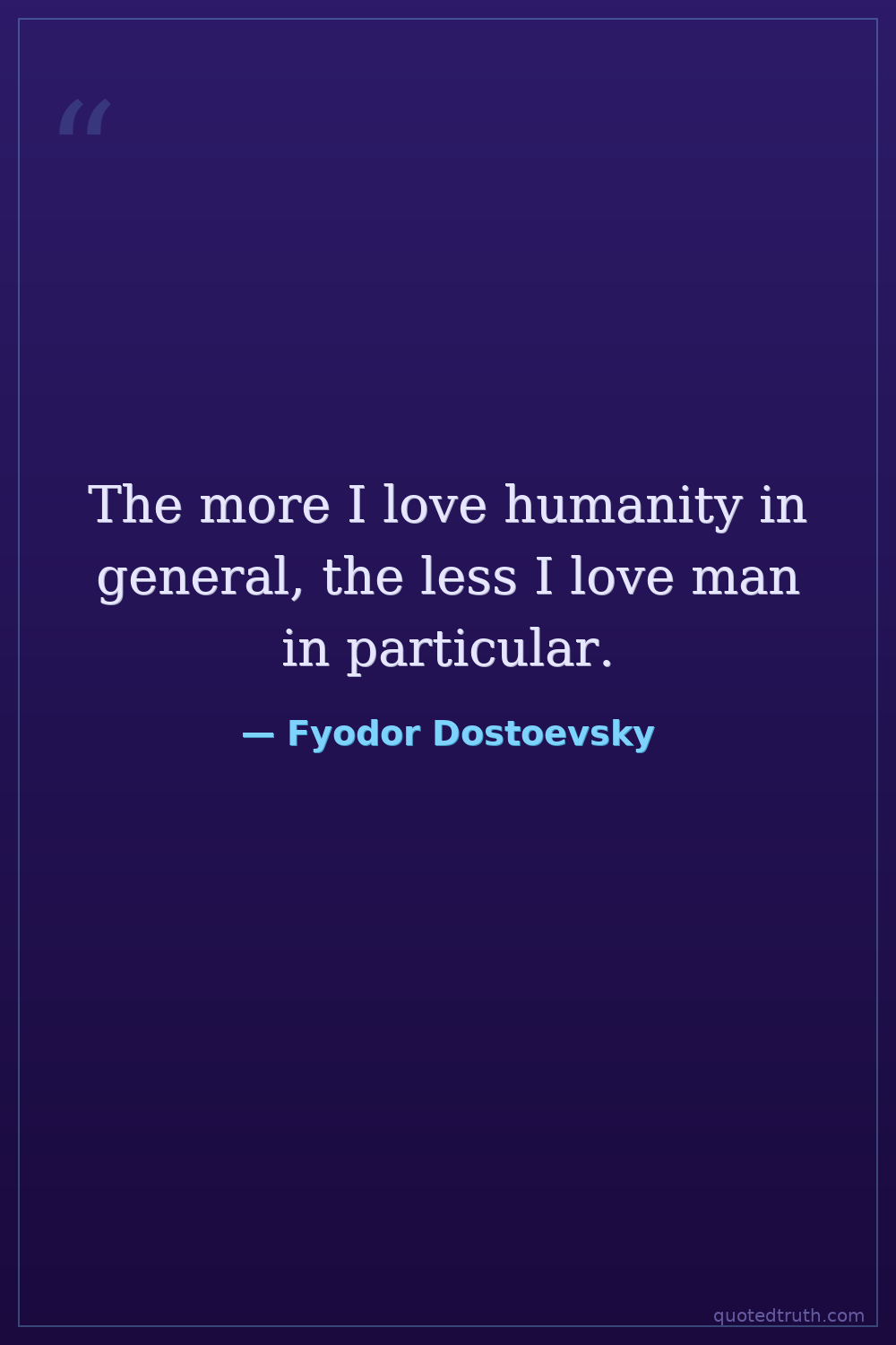 The more I love humanity in general, the less I love man in particular.