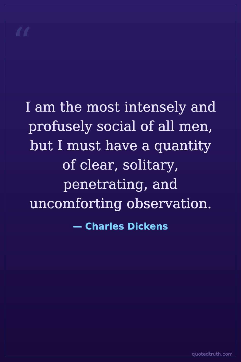 I am the most intensely and profusely social of all men, but I must have a quantity of clear, solitary, penetrating, and uncomforting observation.