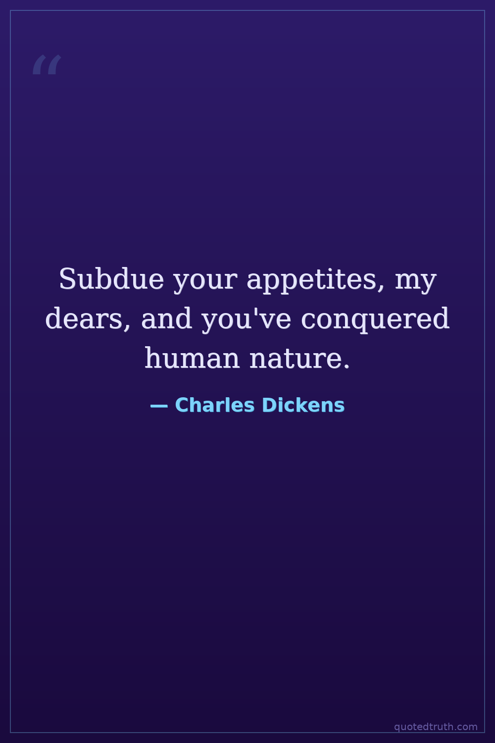 Subdue your appetites, my dears, and you've conquered human nature.