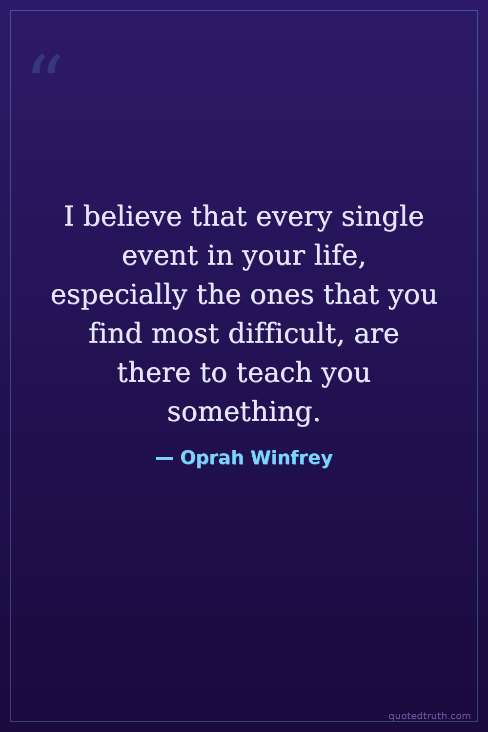 I believe that every single event in your life, especially the ones that you find most difficult, are there to teach you something.