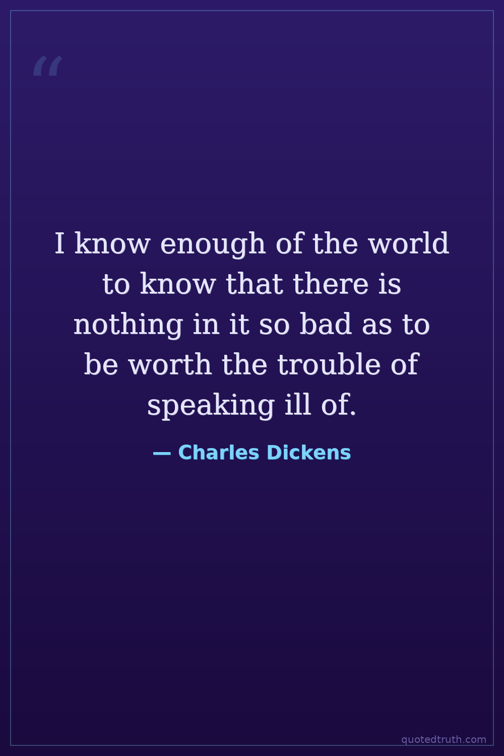 I know enough of the world to know that there is nothing in it so bad as to be worth the trouble of speaking ill of.