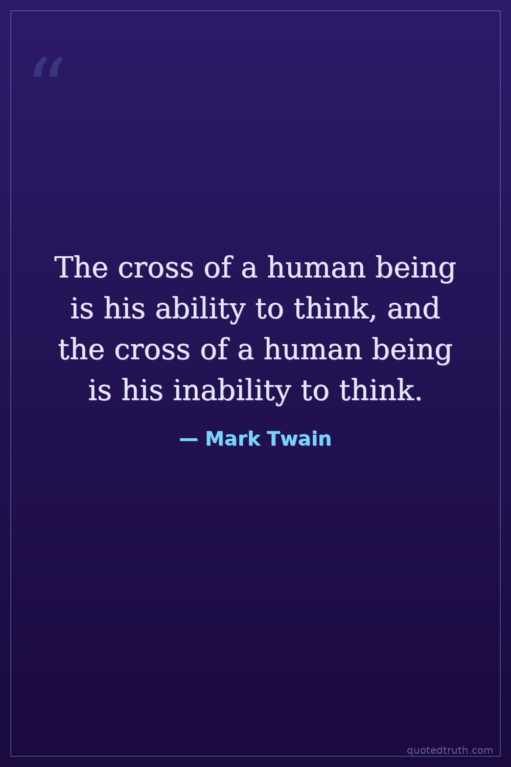 The cross of a human being is his ability to think, and the cross of a human being is his inability to think.