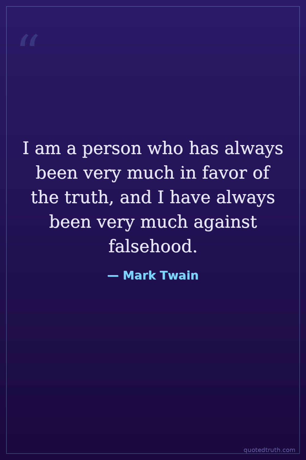I am a person who has always been very much in favor of the truth, and I have always been very much against falsehood.