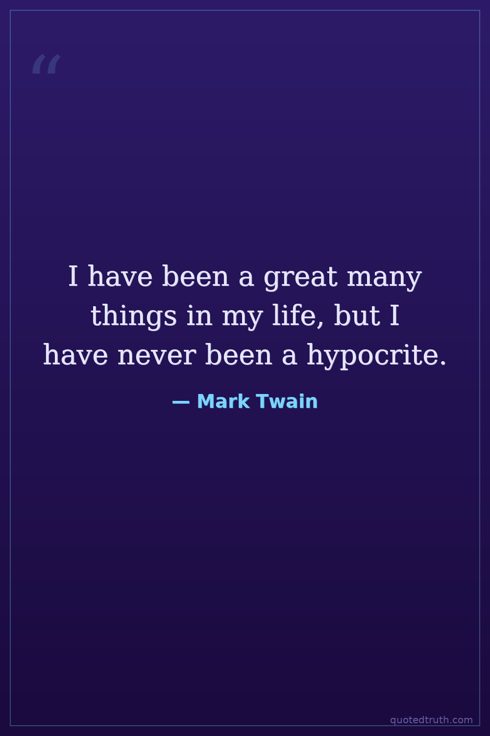 I have been a great many things in my life, but I have never been a hypocrite.