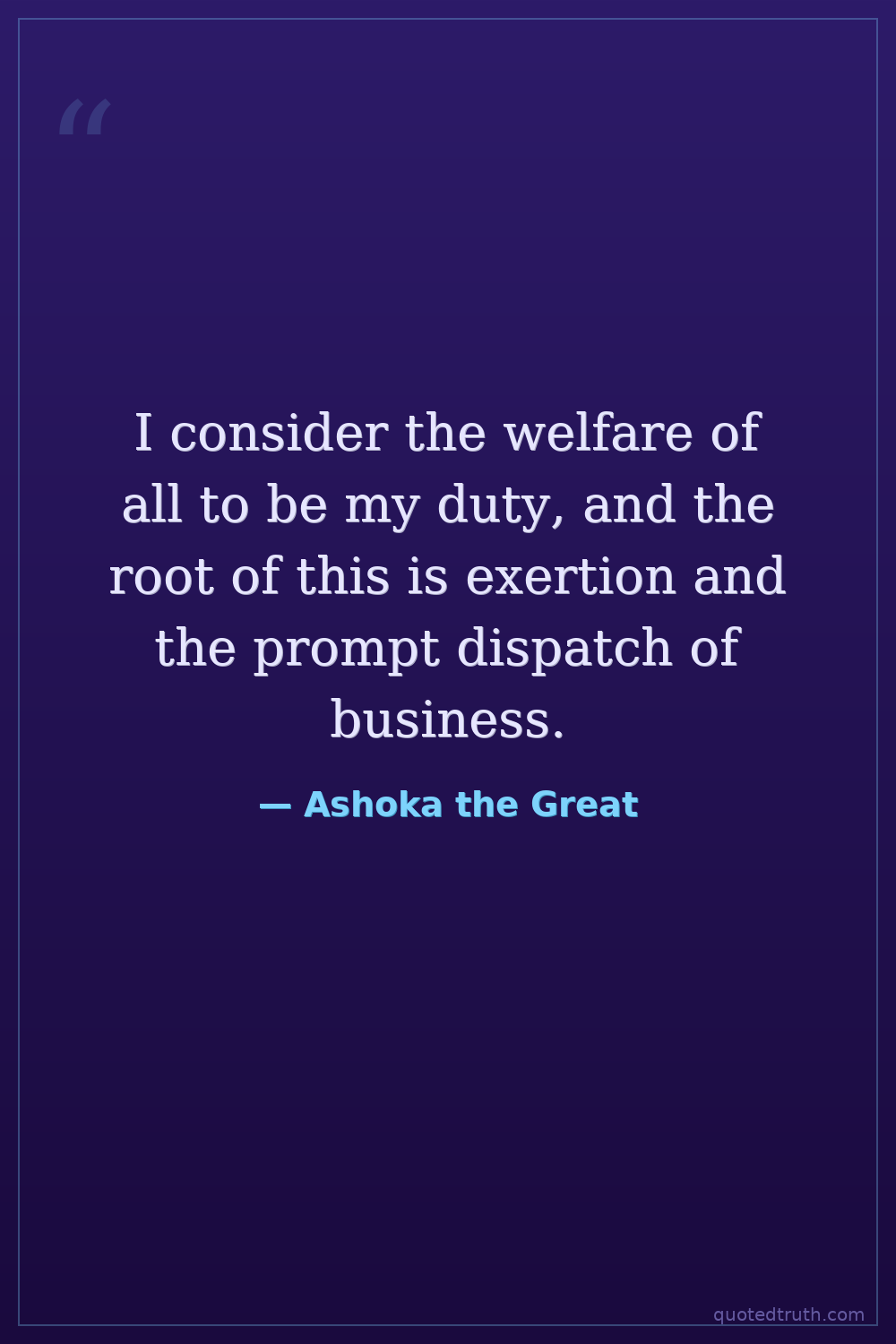 I consider the welfare of all to be my duty, and the root of this is exertion and the prompt dispatch of business.