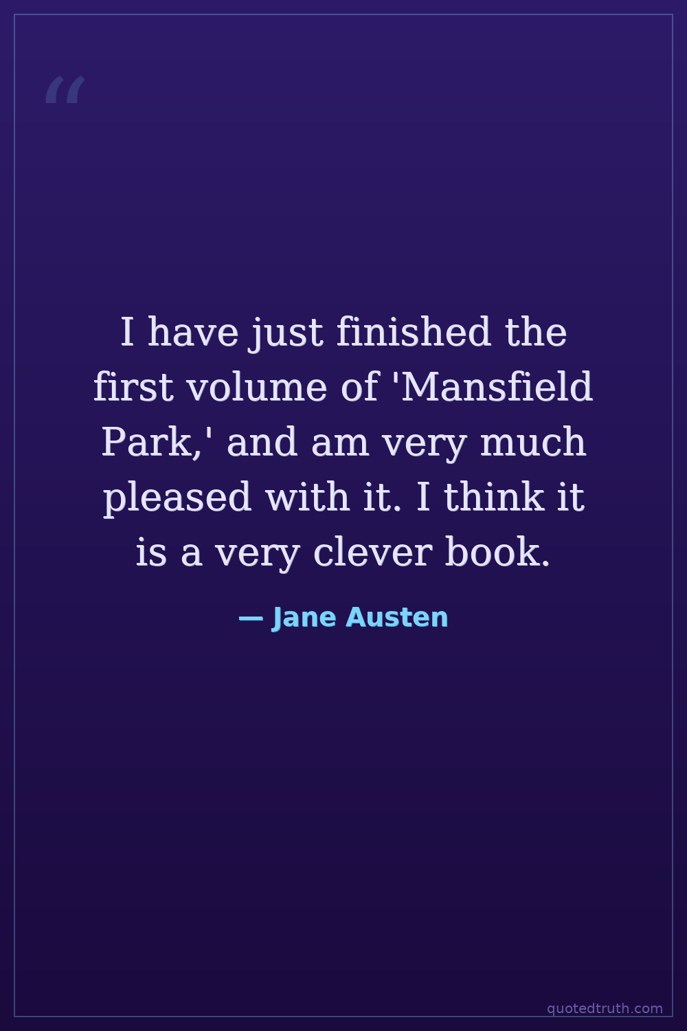 I have just finished the first volume of 'Mansfield Park,' and am very much pleased with it. I think it is a very clever book.