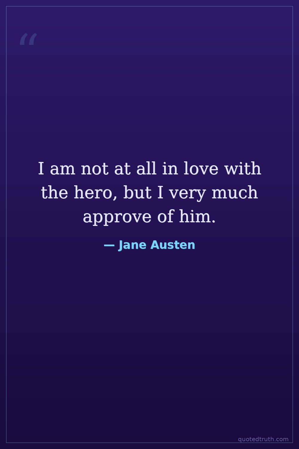 I am not at all in love with the hero, but I very much approve of him.