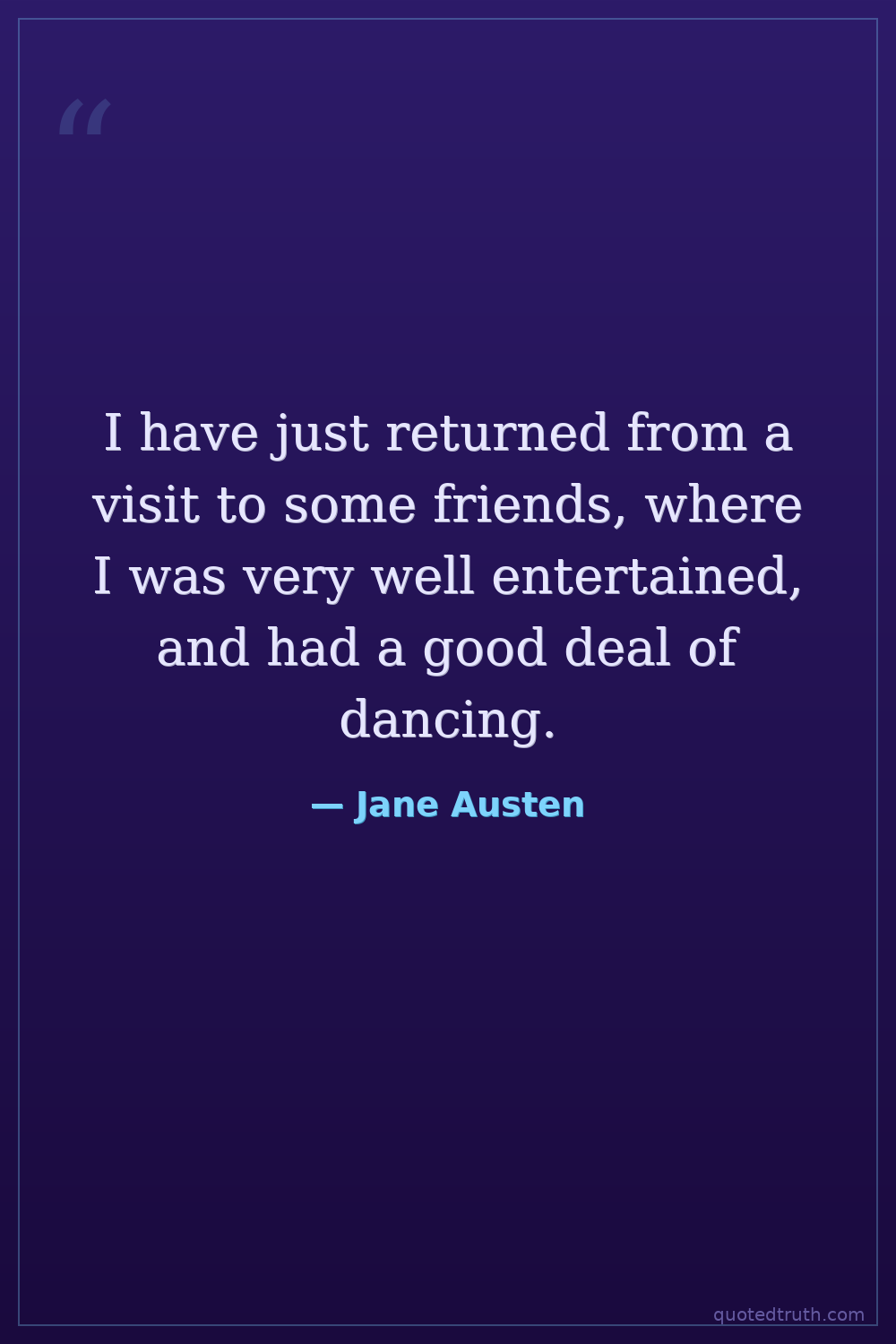I have just returned from a visit to some friends, where I was very well entertained, and had a good deal of dancing.