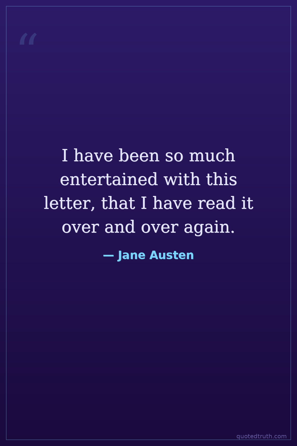 I have been so much entertained with this letter, that I have read it over and over again.
