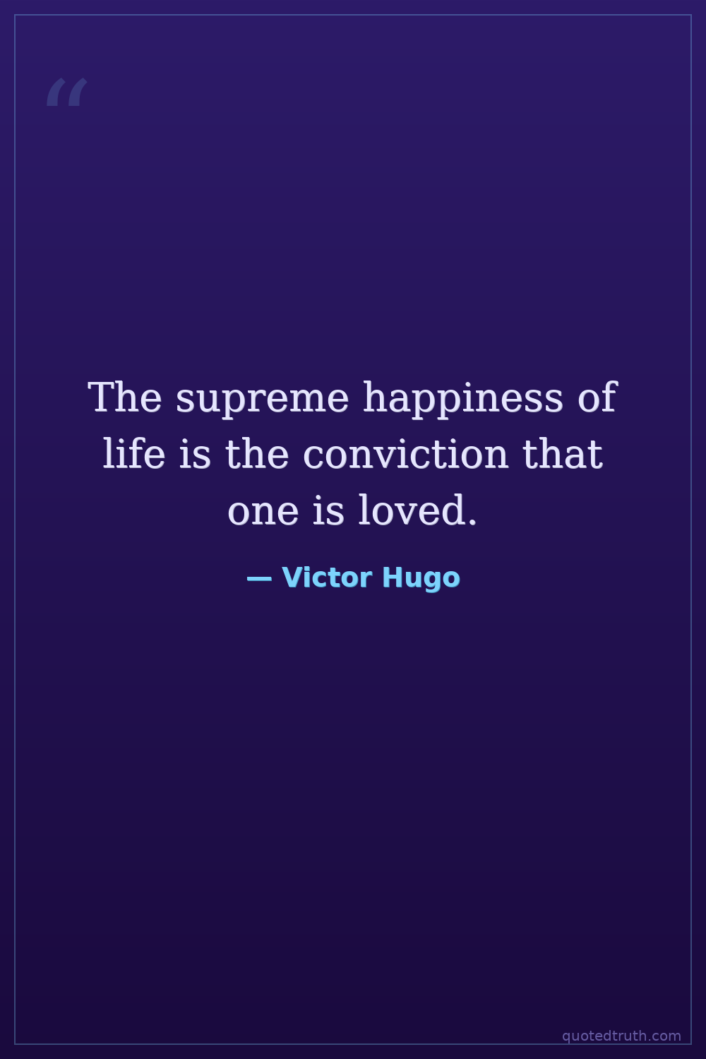 The supreme happiness of life is the conviction that one is loved.