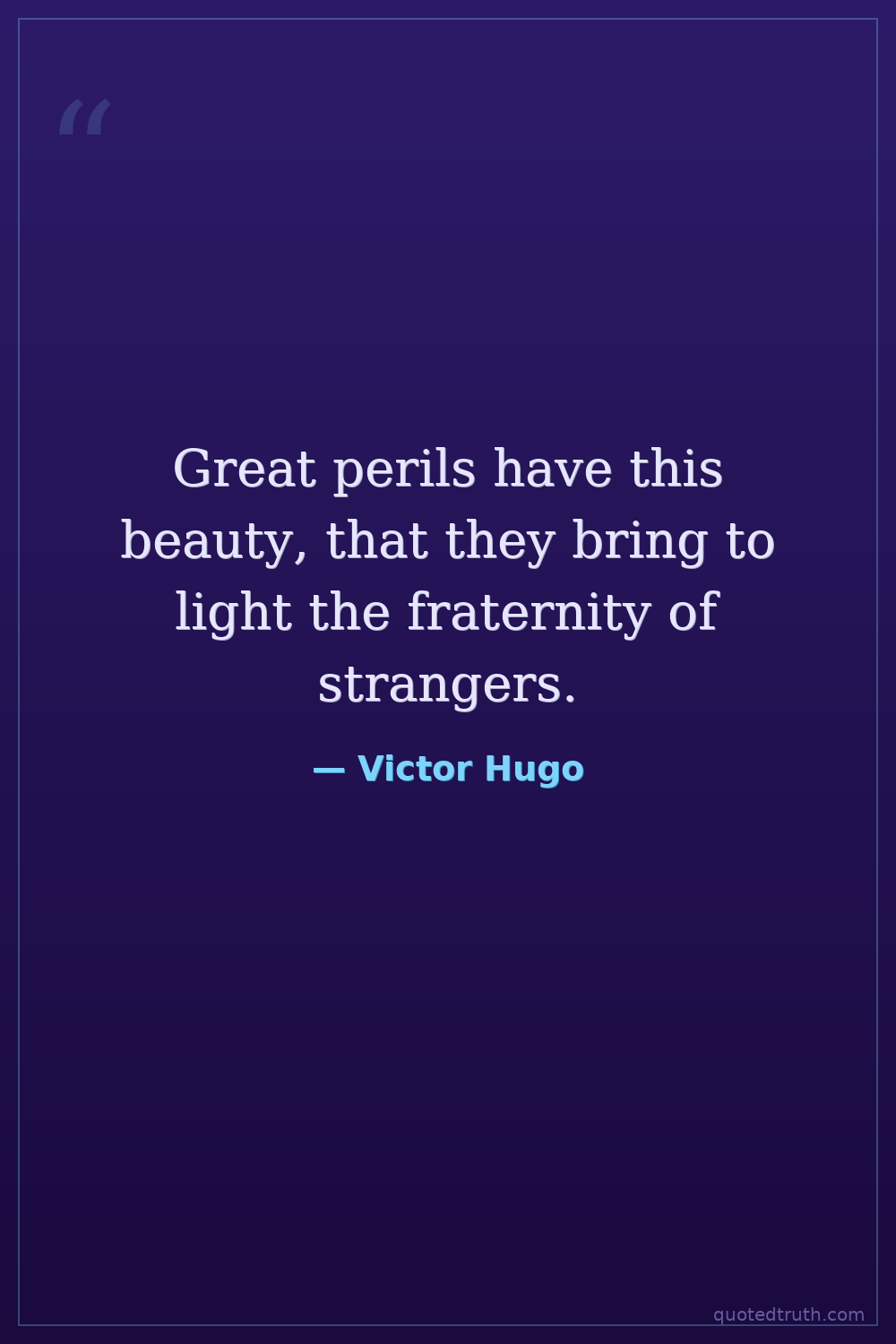 Great perils have this beauty, that they bring to light the fraternity of strangers.