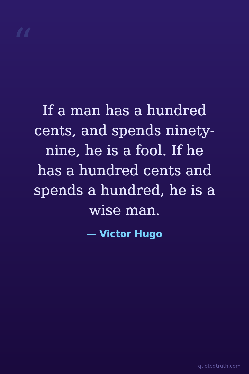 If a man has a hundred cents, and spends ninety-nine, he is a fool. If he has a hundred cents and spends a hundred, he is a wise man.