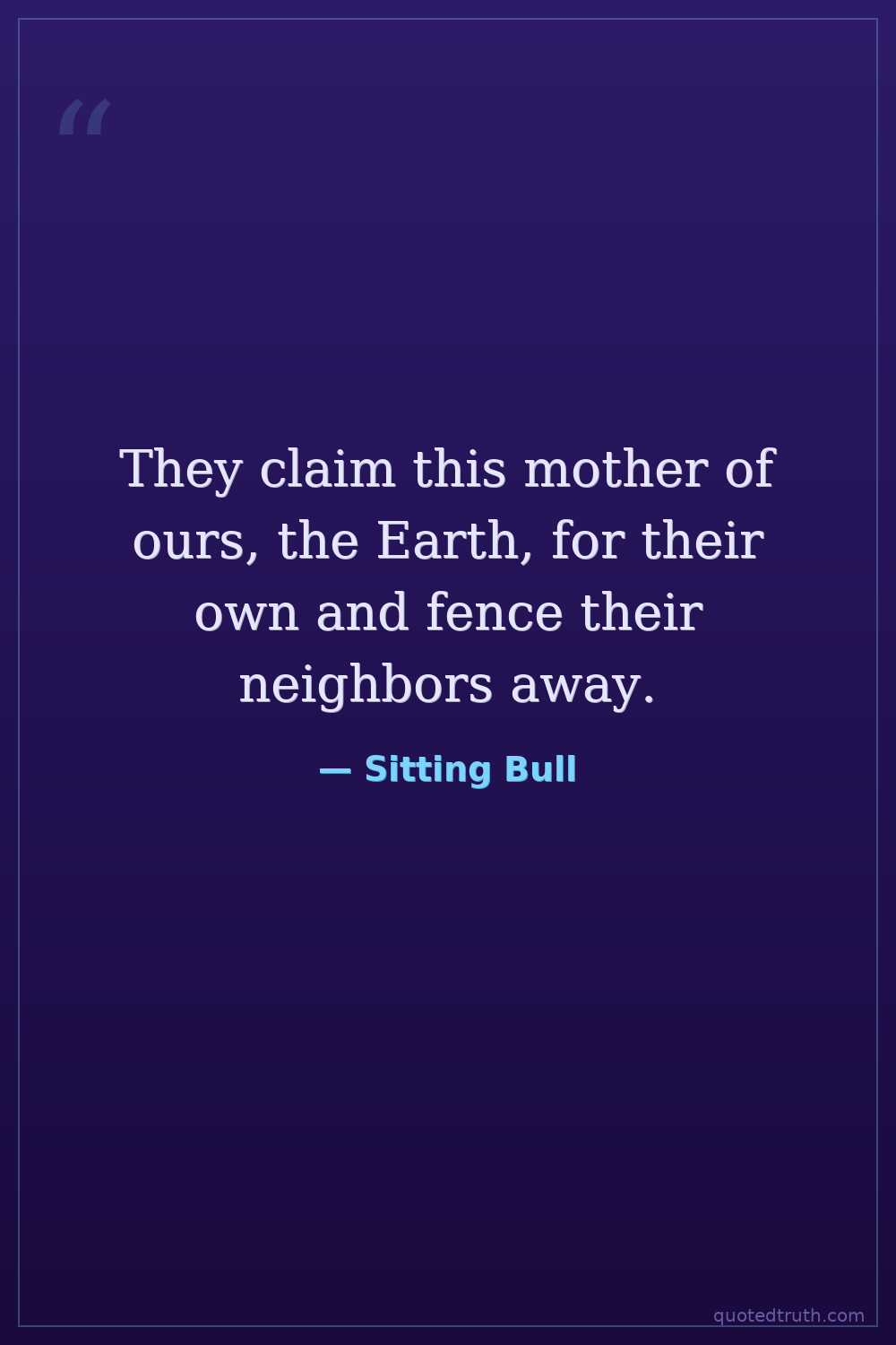 They claim this mother of ours, the Earth, for their own and fence their neighbors away.