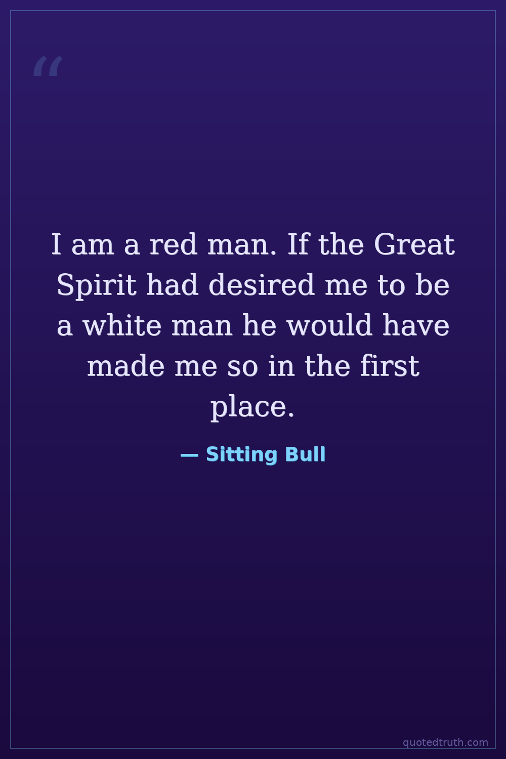 I am a red man. If the Great Spirit had desired me to be a white man he would have made me so in the first place.